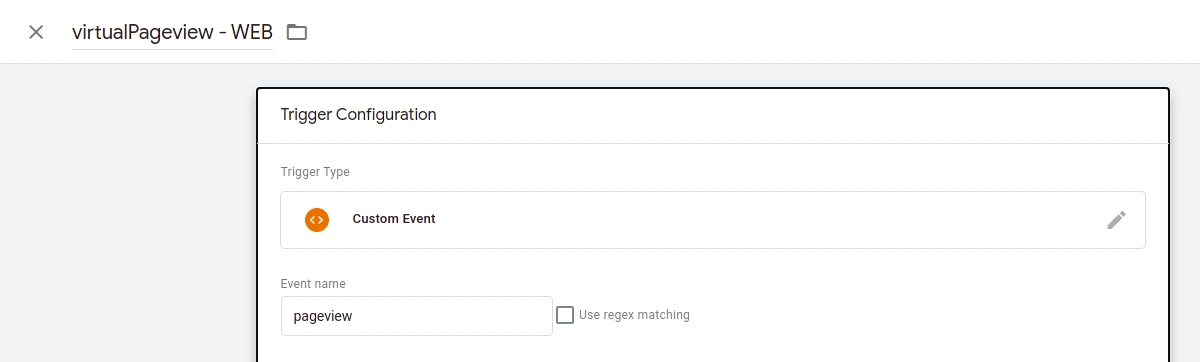 pageviews to Google Analytics via Google Tag ManagerIn order to send pageviews to Google Analytics through Google Tag Manager in a Frontity project you have to create a Trigger listening to a custom event named pageview, instead of the default pageview (the default Event Type pageview, doesn't work properly in Isomorphic Apps). This custom event is automatically send by @frontity/google-tag-manager-analytics package